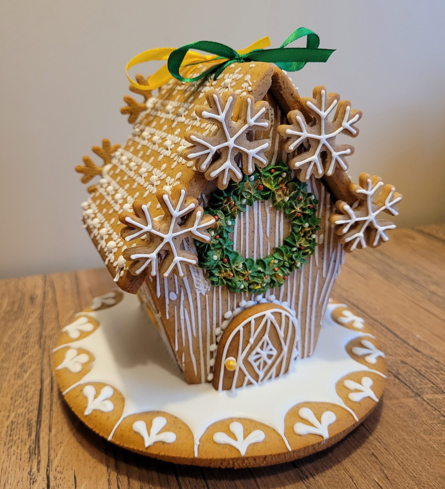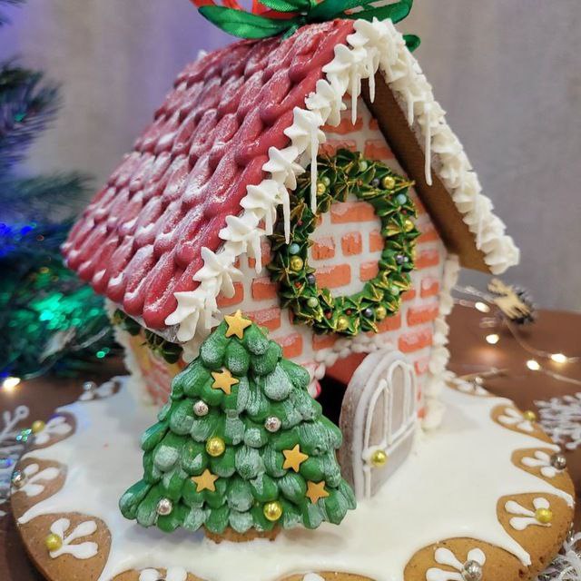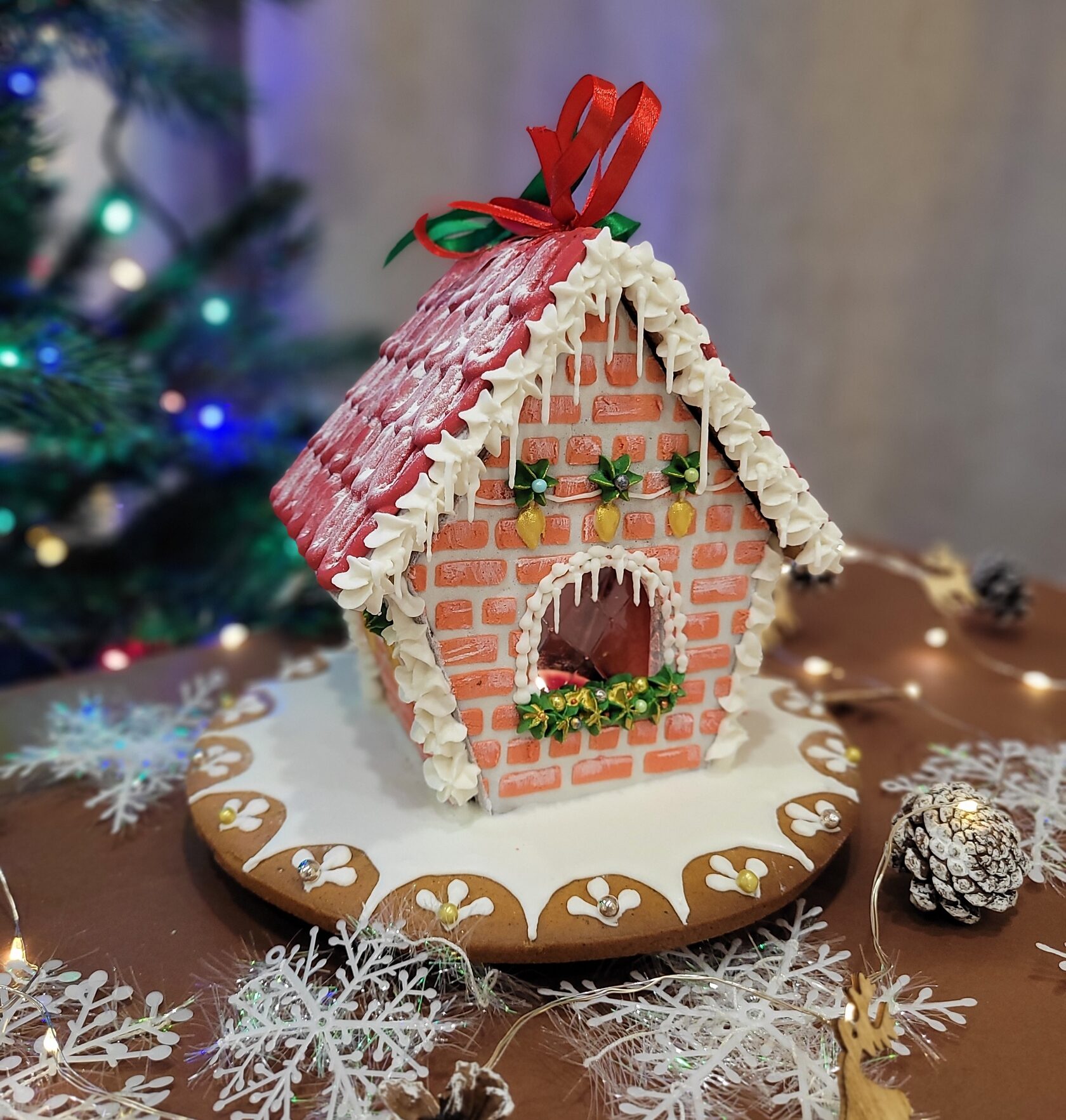Съёмная крыша позволяет разместить в домике фонарик или подарок. Возможно заполнить мини-пряничками.
